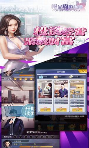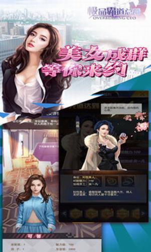 极品霸道总裁的不同游戏模式,并体验最现实的狩猎场。极品霸道总裁是一款用于工作场所开发的现代手机游戏,是一种从第一角度来看,可提供真实创业体验的商业模拟游戏。随之而来的是各种美女,投资回报率招募员工,为您提供培训,您可以经营一家大公司,招募晋升和培养人才,过上总统的幸福生活,并有更多漂亮的女人陪在身边,参与竞争真实而刺激的业务,建立您的业务帝国,使您可以轻松地走上生活的顶峰,并赢得白富美出任首席执行官!该游戏将带给您CEO美好而无尽的生活。