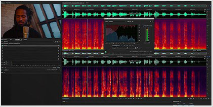 使用这些有效的实时效果,或通过 Essential Sound 面板,从没有底噪或复杂参数的录音中降低或消除混响和背景噪音。