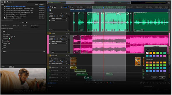 在添加、移动或修剪剪辑时,Audition 中的视频预览会进行实时更新,并始终向用户显示正确的帧,以实现时间准确的编辑、音效等。